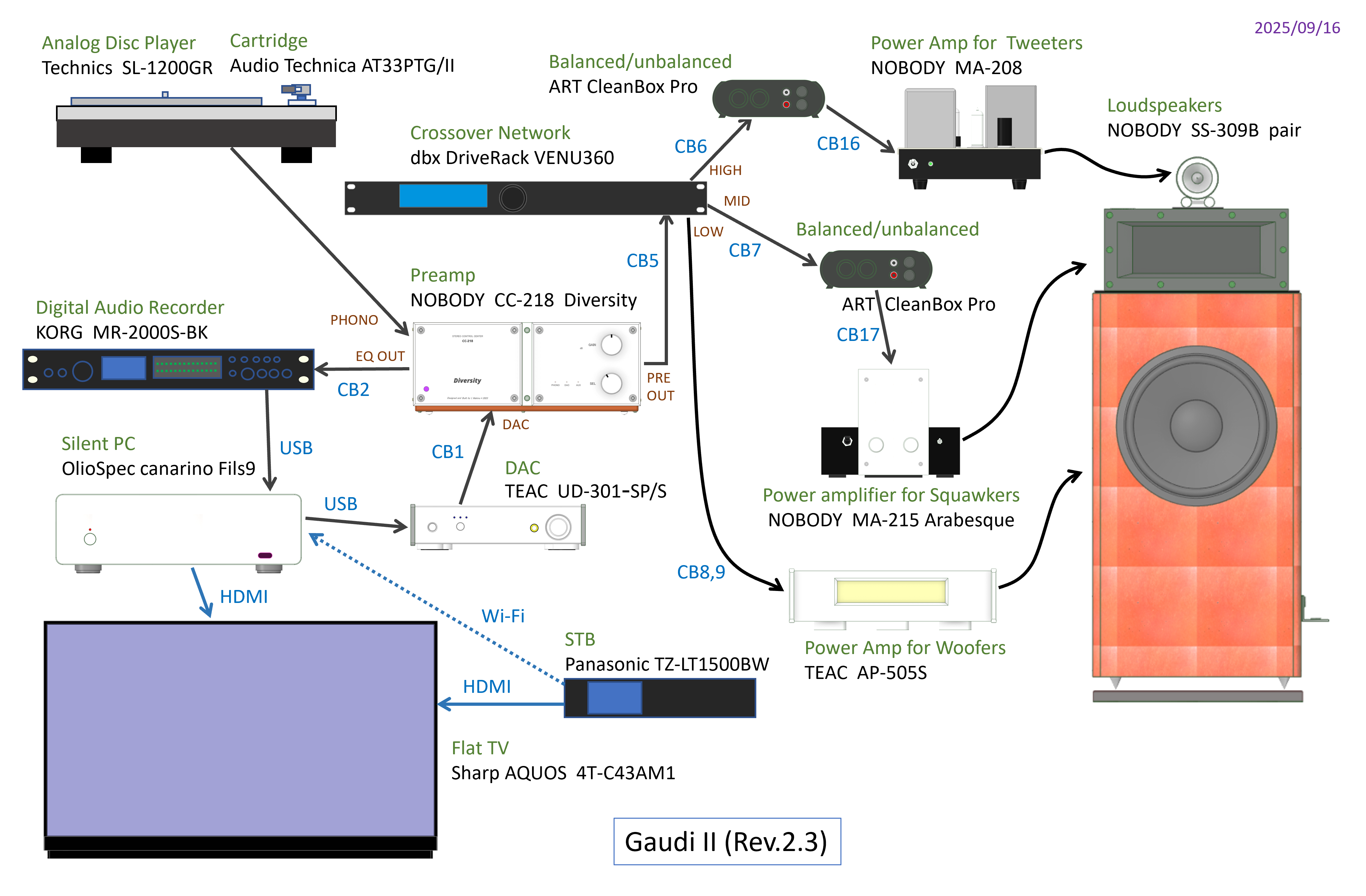 The room acoustics hasn't been changed since Rev.2.03. I continued to use the acoustic goods I had employed for Gaudi with some exceptions.